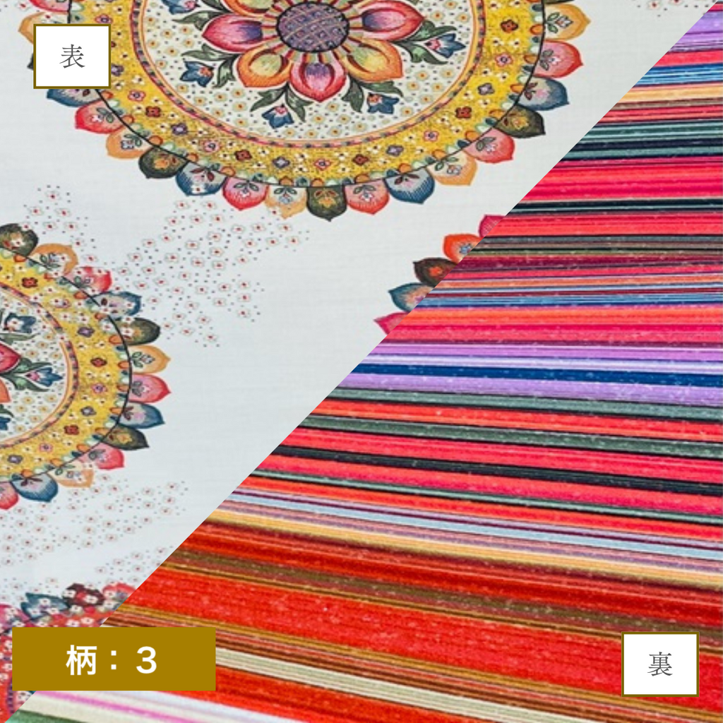 生地の裁断具合によって出てくる柄が多少変わりますが、1点物として末永くご愛用いただければ幸いです。